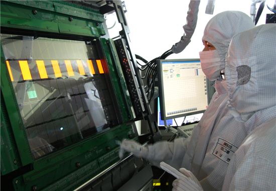 AMOLED(유기발광다이오드)는 백라이트에 의해 빛을 내는 LCD와 달리 자체에서 빛을 내는 디스플레이를 말한다. LCD에 비해 동영상 응답속도가 1000배 이상 빠르고 색상과 선명도가 월등해 꿈의 디스플레이로 평가받는다. $pos="C";$title="";$txt="지난 7월 삼성모바일디스플레이(사장 강호문)의 AMOLED(유기발광다이오드) 출하량이 처음으로 200만대(2인치 기준 400만대)를 돌파한 가운데 한 직원이 AMOLED 생산과정 중 모듈공정을 앞두고 있는 프리미엄 휴대폰용 셀(Cell) 원판을 최종 점검하고 있다.