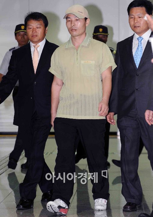 북한에 억류된 지 137일 만인 13일 오후 전격 석방된 현대아산 직원 유성진 씨가 경기도 파주 도라산 남북출입사무소(CIQ)를 통해 귀환하고 있다.