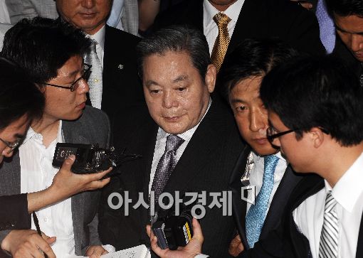 이건희 전 삼성그룹 회장이 14일 오전 삼성SDS 신주인수권부 사채 발행 사건에 대한 선고공판을 받기 위해 고등법원으로 출두하고 있다.