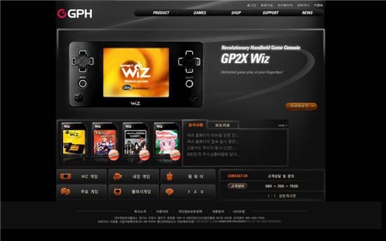새롭게 공개된 'GP2X Wiz' 공식 홈페이지는 사용자들이 보다 편하고 쉽게 게임기와 관련 게임소프트웨어 등을 볼 수 있도록 구성됐다. 특히 앞으로 출시되는 신규 게임에 대한 정보를 보다 상세하게 파악할 수 있도록 게임 메뉴를 'Wiz게임', '내장게임', '무료게임', '플래시게임' 등으로 구분한 것이 특징이다.