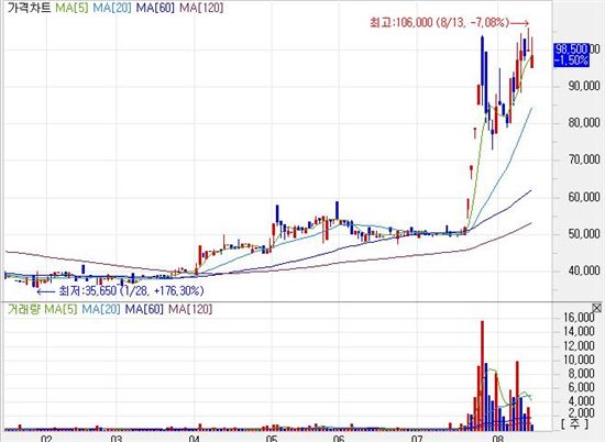 특별한 호재가 눈에 띄지 않는 가운데 급등세를 기록한 다는 것은 자금력이 뒷받침되는 개인이나 단체가 확신을 갖고 투자에 나선 경우가 많다.