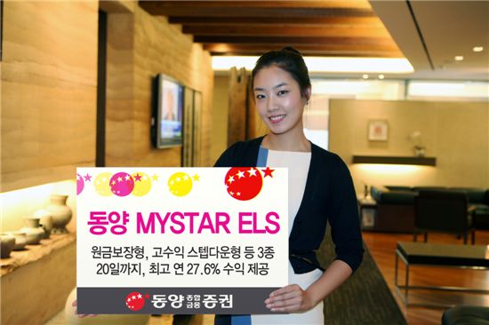 동양종합금융증권은 오는 20일까지 원금보장형 및 조기상환형 파생결합증권(ELS)인 '동양 MYSTAR ELS' 3종(289~291호)을 총 400억원 규모로 공모한다고 17일 밝혔다.