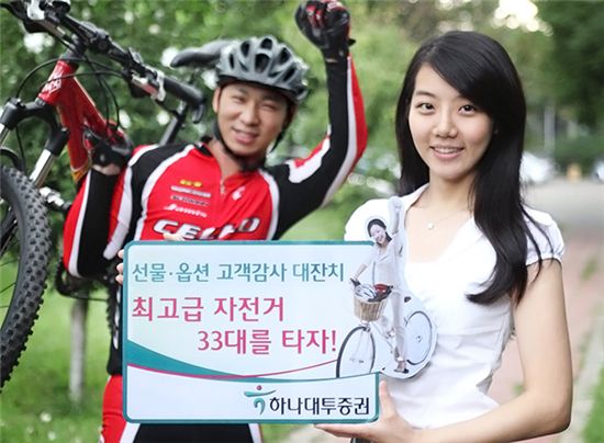 선물옵션 거래고객이 이벤트 기간 중 온라인으로 선물 1계약 이상, 옵션주문 200만원 이상 매매시 추첨을 통해 150만원 상당의 고급자전거를 매주 3대씩, 이벤트 기간인 11주 동안 총 33대를 경품으로 지급할 예정이다.