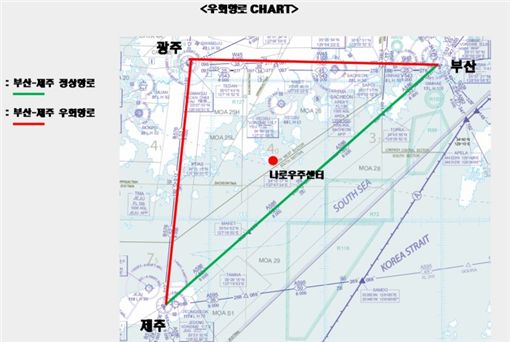 19일 항공업계에 따르면 이날 나로호의 발사 시간인 오후 5시를 전후해 부산~제주 구간을 운항하는 항공기 17편이 우회 운항키로 했다.