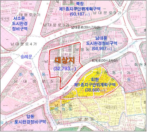 남대문시장은 지리ㆍ문화적으로 중요한 위치에 있음에도 불구하고 과거 도심재개발 구역에서 제외된 지역으로 별도의 관리수단이 없어 화재 및 미관을 저해하는 노후 건축물이 난립한 곳이다.
