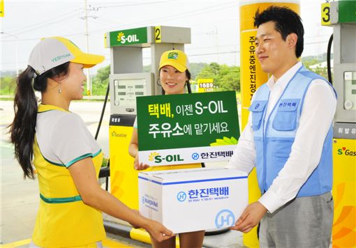 S-Oil은 20일 한진택배와 전략적 제휴를 맺고 국내 최초로 주유소 택배서비스를 제공한다고 밝혔다.