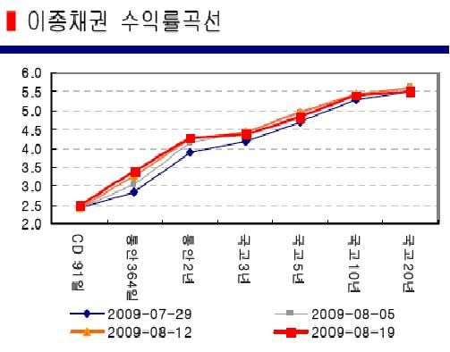 한편 통안2년과 국고3년 금리가 전일 마감가 기준으로 각각 4.27%와 4.36%를 기록해 스프레드차가 9bp로 좁혀지고 있다. 한 증권사 채권딜러는 “금융위기 이전까지만 하더라도 통안2년이 국고3년 금리보다 높았다. 조만간 금리역전이 가능할 것으로 보인다”고 예상했다.