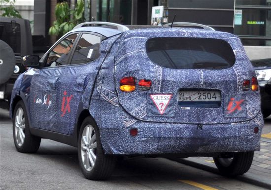 청바지 위장막을 쓴 채 서울 도심을 활보하는 현대차 신형 스포츠유틸리티차량(SUV) '투싼 ix'가 네티즌 사이에서 화제다.