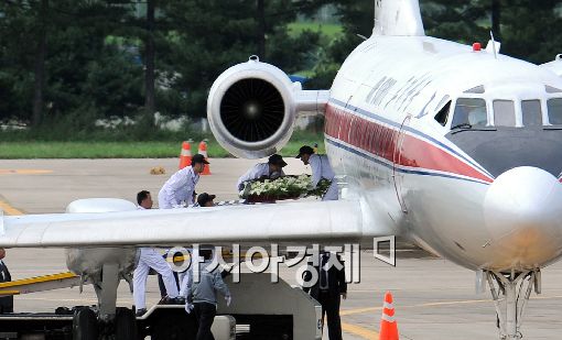 [포토]활주로 내려서는 김정일 위원장 조화