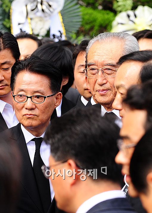 21일 오후 서울 국회에서 김기남 북한 노동당 비서가 박지원 의원에 안내를 받으며 김대중 전 대통령 조문을 하기 위해 들어서고 있다.