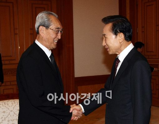 $pos="C";$title="김기남";$txt="";$size="510,327,0";$no="200908231204451735914A_1.jpg";@include $libDir . "/image_check.php";?>이명박 대통령이 23일 오전 청와대에서 고 김대중 전 대통령 조문차 방남한 김기남 노동당 비서와 악수를 나누고 있다. <사진제공:청와대>