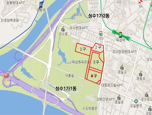 한편 시가 지난 2005년 분양한 뚝섬 상업용지(8만3503㎡)는 총 4개 구역으로 나뉘며 뚝섬 4구역은 지난 2005년 6월 부동산 시행사인 P&D홀딩스가 서울시로부터 4440억원에 낙찰받았다. 하지만 계약금 444억원을 제외한 잔금을 3년이 넘도록 내지 못해 계약이 취소됐다.
