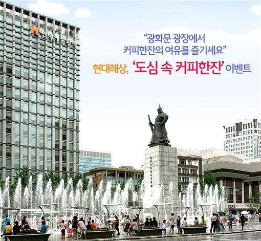 현대해상은 24일 광화문 광장 바로 옆에 위치한 현대해상 본사사옥의 위치를 묻는 퀴즈에 정답을 맞춘 자사고객 300명을 선정, 스타벅스 광화문점 커피 2잔 무료교환권을 지급하는 '광화문 광장과 함께하는 도심 속 커피한잔' 이벤트를 실시한다고 밝혔다.