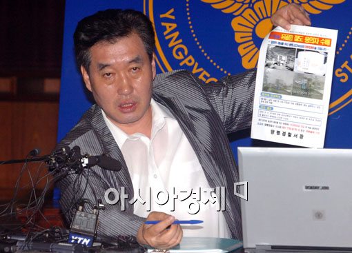 이날 갑산공원묘원재단 등기이사 연재율 씨는 24일 경기도 양평군 서종면사무소에서 '故 최진실 유골함 절취 사건'의 경찰 브리핑이 끝난 후