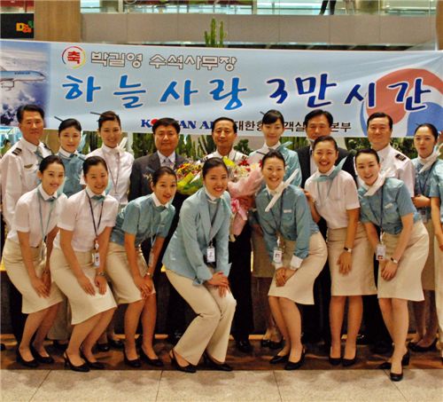 대한항공이 비행시간 3만 시간을 기록한 승무원을 배출했다.