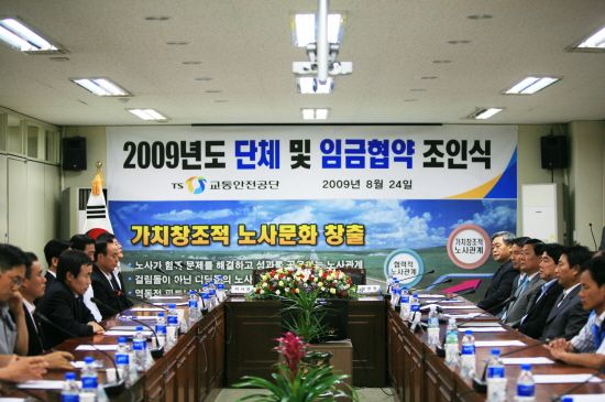 교통안전공단(이사장 정상호)은 25일 공기업 최초로 인사ㆍ경영권 침해조항과 불합리한 노사관행 개선 내용을 골자로 한 2009년도 단체 및 임금협약을 타결했다고 발표했다.