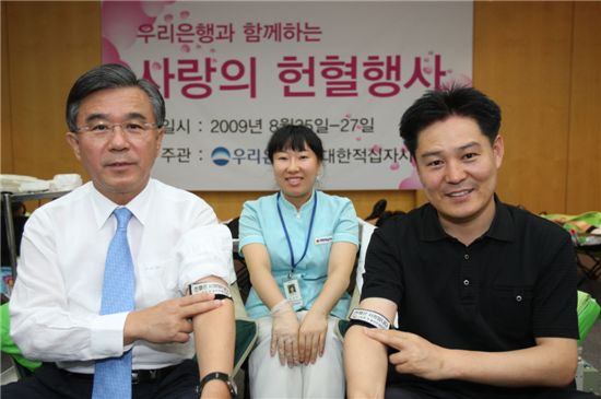 우리은행은 헌혈운동의 사회적 확산을 위해 이종휘 우리은행장과 박상권 우리은행노동조합 위원장을 비롯해 본점 임직원 500여명이 참여한 가운데 25일부터 27일까지 3일간 사랑의 헌혈행사를 실시한다고 25일 밝혔다.