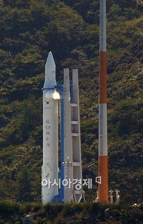 우리나라 첫 우주발사체 '나로호(KSLV-1)'의 발사시각이 25일 오후 5시로 확정된 가운데 전남 고흥군 외나로도 나로우주센터에서 나로호가 발사를 기다리고 있다.