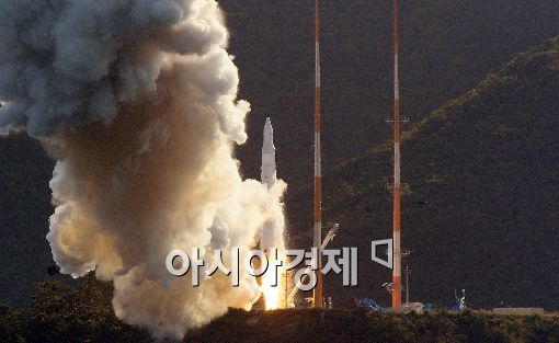 우리나라 첫 우주발사체 '나로호(KSLV-1)'가 25일 오후 5시 전남 고흥군 외나로도 나로우주센터에서 발사되고 있다.
