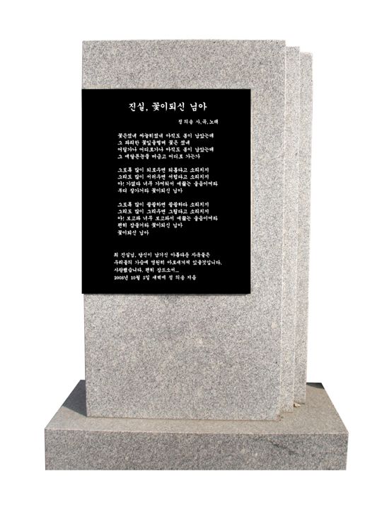 ▲유족들도 제 뜻은 이해하고 계신다. 아마도 최근 불미스런 일로 너무나 경황이 없는 상태에서 일부 언론의 보도만 보면 그렇게 생각하실 수도 있을 것이다. 하지만 진위를 아시면 나의 순수함을 충분히 이해하실 것이다. 지난 봄 내가 만든 추모곡이 인터넷에서 엄청난 반향을 일으키자, 난 자신감을 얻어 추모비까지 제작했었다. 그래서 유족 측에 추모비를 세우겠다고 하시자 흔쾌히 허락하셨다. 실제로 3월23일 추모비제막식 날짜까지 잡혔었고 초청하면 기꺼이 오시겠다고 까지 하셨다.