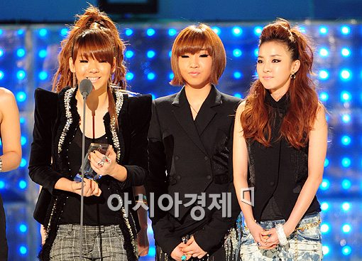 투애니원의 산다라박은 "좋은 상 받아서 기쁘다. 빅뱅이 못와서 안타깝다. 열심히 할테니 많이 사랑해달라"고 소감을 전했다.