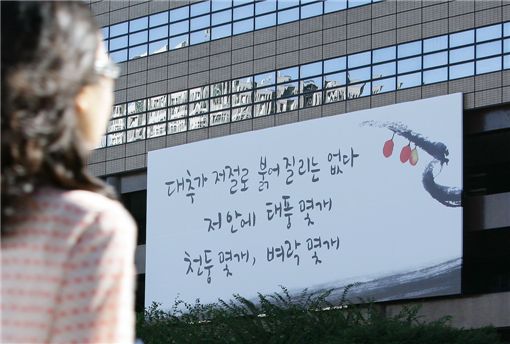 한편 광화문 글판은 교보생명 신용호 창립자의 아이디어로 1991년부터 시작된 이래 19년째 같은 자리에서 계절이 바뀔 때마다 사랑과 희망의 메시지를 전하고 있다.