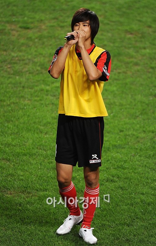 마침내 오후 8시 30분께 정윤호가 경기장에 등장하자 4000여명의 팬들이 일제히 환호성을 질렀다.