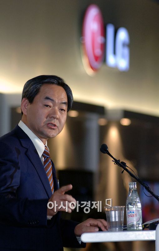 3일(현지시간) LG전자는 독일 베를린에서 열리는 'IFA 2009' 개막을 하루 앞두고 전시장 인근 메세 베를린에서 HE글로벌 컨퍼런스(HE Global conference)를 개최했다. 사진은 외신기자 500여 명이 참석한 가운데 HE사업본부장 강신익 사장이 IFA 대표작 보더리스 LCD TV를 설명하고 있는 모습.