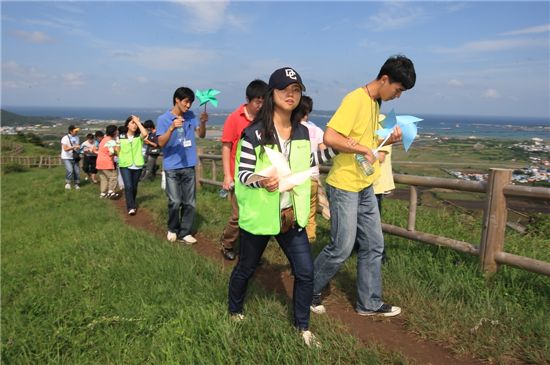 '올레' 경영을 펼치고 있는 KT 사랑의 봉사단이 9월 4일부터 6일까지 2박3일의 일정으로 부천시 장애인 종합복지관의 지적장애인 40명과 함께 제주 올레길을 걸었다.