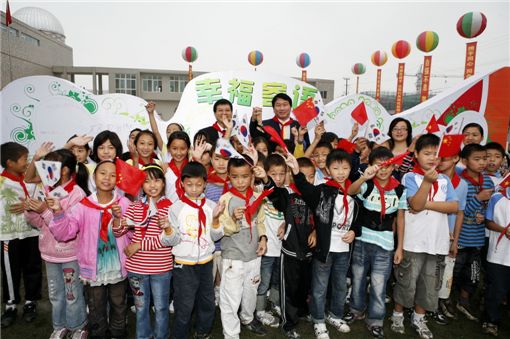 지난 1일 개교한 '행복 소학교'는 SK건설이 최고 수준의 내진 설계와 친환경 공법으로 건설했다. 천문대와 에너지 정보통신 교육관 등 첨단 교육 시설과 각종 편의 설비도 갖췄다. 학교는 300여명의 학생을 수용할 수 있다.