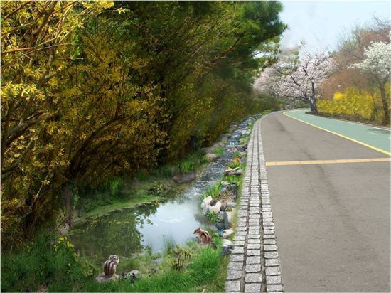이번에 만드는 실개천은 기존 콘크리트 배수로를 자연형 계곡으로 재정비하거나 새로운 수로를 만들어 연결하게 된다.