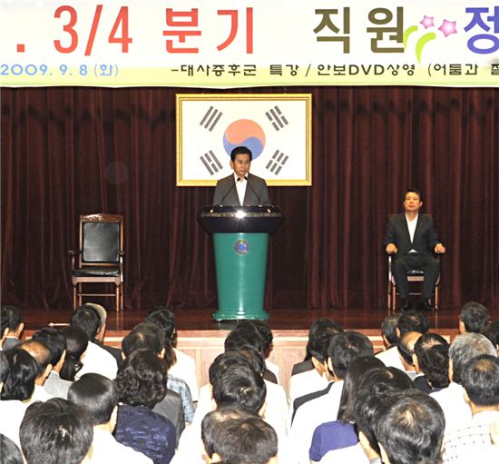 한편 오상우 교수의 강연이 끝나고 '내딸을 100원에 팝니다'라는 기막힌 북한 실상을 전하는 동영상을 통해 공무원들의 안보의식을 가다듬는 시간도 마련했다.