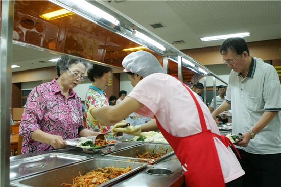 한 번에 60명까지 수용 가능한 규모의 공간에 배식대 퇴식대 국보온통 등 구내식당과 동일한 장비를 갖추고 자원봉사자들의 배식으로 어르신의 점심식사가 이루어지게 된다.