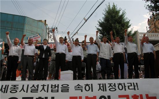 홍석화 행정도시 사수 연기군 대책위원회 사무국장은 “정부가 시간을 질질 끌면서 세종시의 성격을 바꾸려고 하는 술책을 벌이고 있다”면서 “세종시가 원안대로 이뤄지지 않을 땐 정부가 큰 재앙을 맞게 될 것”이라고 말했다.