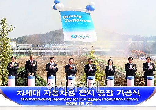 삼성SDI는 10일 오전 울산공장에서 독일 보쉬 합작사인 SB리모티브의 전기자동차용 배터리 공장 기공식을 가졌다.