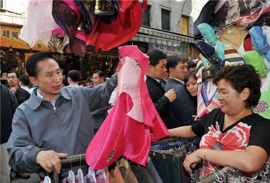이명박 대통령은 10일 "우리 정부는 서민이 찾는 전통시장이 잘되는 것을 바라고 있다"면서 "경제가 좀 더 좋아지기 시작해도 서민은 (어려움이) 1년은 더 간다"고 말했다.