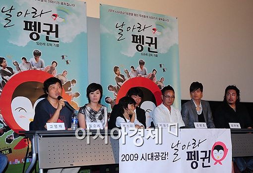 [아시아경제신문 이기범 기자]임순례 감독과 배우 조진웅, 최규환, 박원상, 문소리, 안도규, 손병호가 10일 오후 서울 용산 CGV에서 진행된 영화 '날아라 펭귄' 시사회 기자간담회에 임하고 있다.