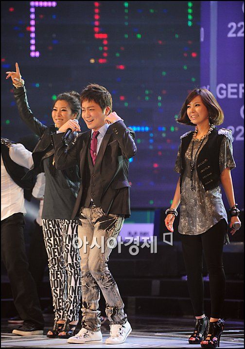 [아시아경제신문 박성기 기자]가수 박현빈과 그룹 거북이의 금비와 지이가 10일 오후 6시 서울 마포구 상암동 DMC 누리꿈스퀘어에서 열린 Mnet(엠넷) 'M! CountDown'(엠카운트다운)'에서 열창하고 있다.