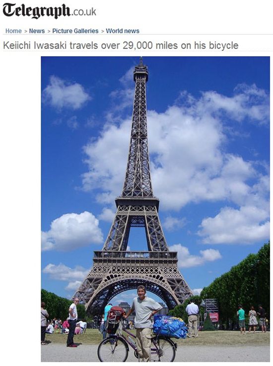 지금까지 37개국을 돌아본 이와사키가 자전거로 달린 노정만 4만5000km에 이른다. 그 사이 자전거 두 대를 도둑맞고 두 대는 망가졌다. 지금 타고 있는 자전거는 다섯번째 구입한 것이다.