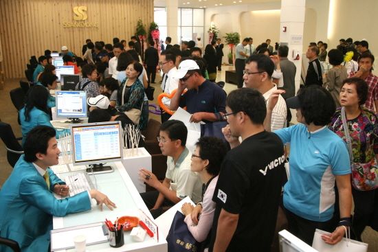 ◇남양주 별내는 '빼곡'= 남양주 별내지구에서 분양하는 '쌍용 예가' 모델하우스는 더 많은 관람객을 끌었다. 이틀간 2만5000여명의 구름같은 인파가 모여들면서 인산인해를 이뤘다. 쌍용건설 관계자는 "주말에 대비해 추가로 장만한 사은품마저 동났다"고 설명했다.