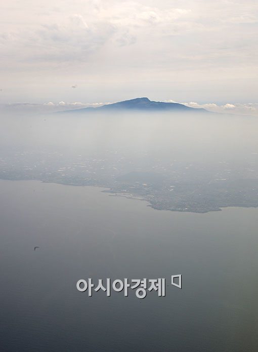 14일 오전 제주상공에서 바라본 한라산의 모습이 한폭의 수채화를 보는듯한 풍경이 연출되고 있다.