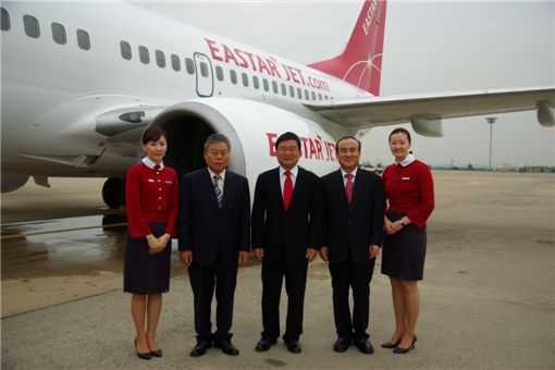 이날 5호기 도입 행사에서 이상직 회장은 "이스타항공의 무대가 국내선에서 국제선으로 넓어지게 됐다"면서 "서비스만족 1위에 그치지 않고 국제선에서도 국가대표 국민항공사가 될 것"이라고 밝혔다.