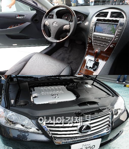 한국도요타자동차(대표이사 치기라 타이조)가 15일 오전 서울 충무로 렉서스 종합서비스센터에서 럭셔리 패밀리 세단인 뉴 ES350를 선보이고 있다.