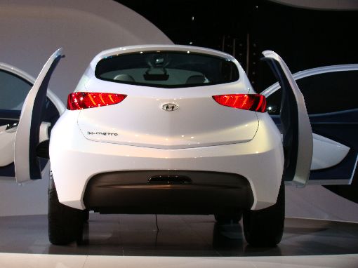 현대자동차가 15일(현지시간) 제63회 프랑크푸르트 모터쇼에서 선보인 친환경소형 CUV 콘셉트카 '아이엑스메트로(ix-Metro)'. 아이엑스메트로는 1.0 터보 GDI 엔진과 5kW의 전기모터를 탑재한 마일드 하이브리드 시스템이 적용됐다.