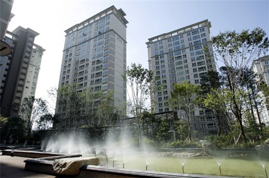 강남의 새로운 명품 주거단지로 인정받고 있는 반포자이의 모습을 그대로 옮겨놓은 것처럼 높다란 소나무와 길게 조성된 개울물이 잘 어울리는 조경이 펼쳐져 있다.