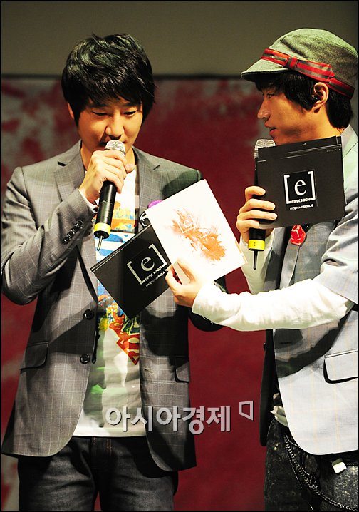 [아시아경제신문 박성기 기자]그룹 에픽하이의 멤버 투컷과 타블로가 16일 오후 2시 서울 압구정 CGV에서 열린 '에픽하이 6집 뮤직비디오 시사회 및 쇼케이스'에서 자신들의 앨범을 소개하고 있다.