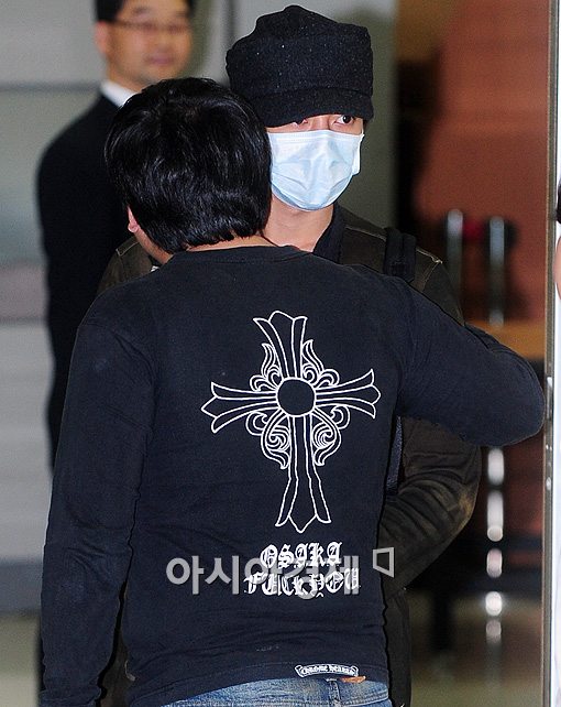 [아시아경제신문 이기범 기자]지난 8일 일본에서 신종인플루엔자 확진을 받아 도쿄 한 병원에서 요양해온 SS501 김현중이 16일 오후 서울 김포공항을 통해 입국, 매니저와 인사를 나누고 있다.