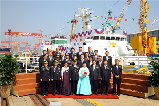 현대중공업은 18일 오전 11시 30분 울산 본사에서 우리나라 해양경찰청에서 수주한 3000t급 경비구난함 '태평양 9호'의 진수식을 개최했다. 이날 진수식에는 최길선 현대중공업 사장 윤혁수 해양경찰청 차장 등 공사 관계자 100여 명이 참석했다.