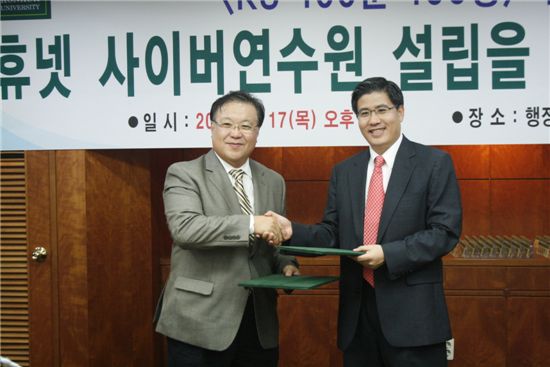 $pos="C";$title="휴넷-건국대 온라인 교양강좌 협약 체결";$txt="17일 건국대에서 열린 'KU 100분 100강' 온라인 강좌 제휴 협약식에서 휴넷 조영탁 대표(오른쪽)와 김우봉 건국대 부총장이 협약서를 교환하고 있다.";$size="550,367,0";$no="2009091816162334608_1.jpg";@include $libDir . "/image_check.php";?>평생학습 전문기업 휴넷(대표 조영탁)은 17일 건국대학교와 교양강좌 ‘KU 100분 100강’의 전략적 제휴를 체결했다.