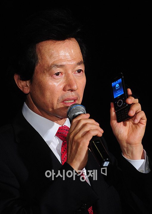 [아시아경제신문 이기범 기자]최근 신인가수로 데뷔한 허경영이 18일 오후 서울 홍대 한 클럽에서 '허경영의 라잇 나우(Right Now)' 콘서트 기자회견에서 전원이 꺼져있는 휴대전화를 키자마자 걸려온 팬의 전화를 받고 '콜미'를 부르고 있다.